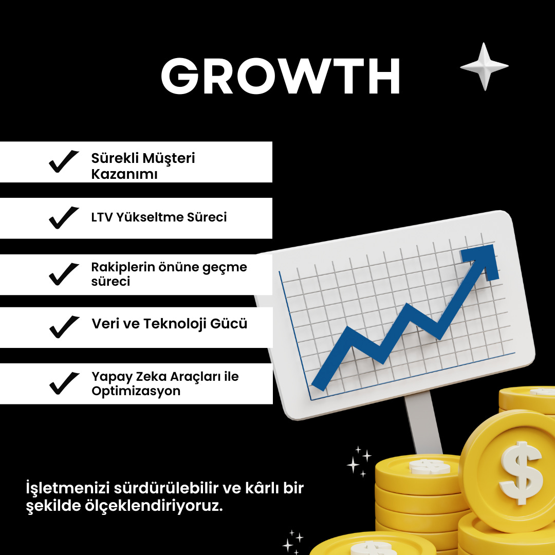 Stratejik İçgörüler ve İyileştirme: Verilere dayalı olarak büyüme stratejisinin hangi alanlarının iyi çalıştığı, hangilerinin iyileştirilmesi gerektiği konusunda sürekli geri bildirim ve proaktif öneriler sunulması. Düzenli strateji gözden geçirme toplantıları.